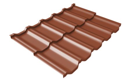 Металлочерепица модульная квинта Uno Grand Line c 3D резом 0,5 Atlas RAL 8004 терракота