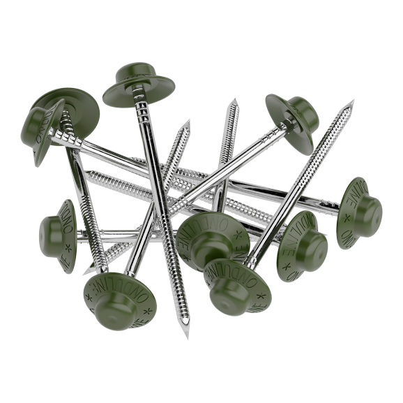 Гвозди с литой шляпкой Ондулин 75 мм зеленые
