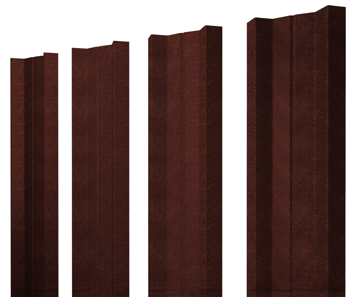 Металлический штакетник с выпуклой во внешнюю сторону формой с канавкой на центральной части и дополнительными боковыми ребрами.