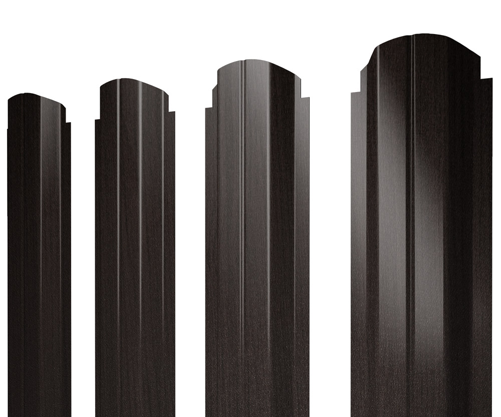 Металлический штакетник с выпуклой во внешнюю сторону формой с канавкой на центральной части.